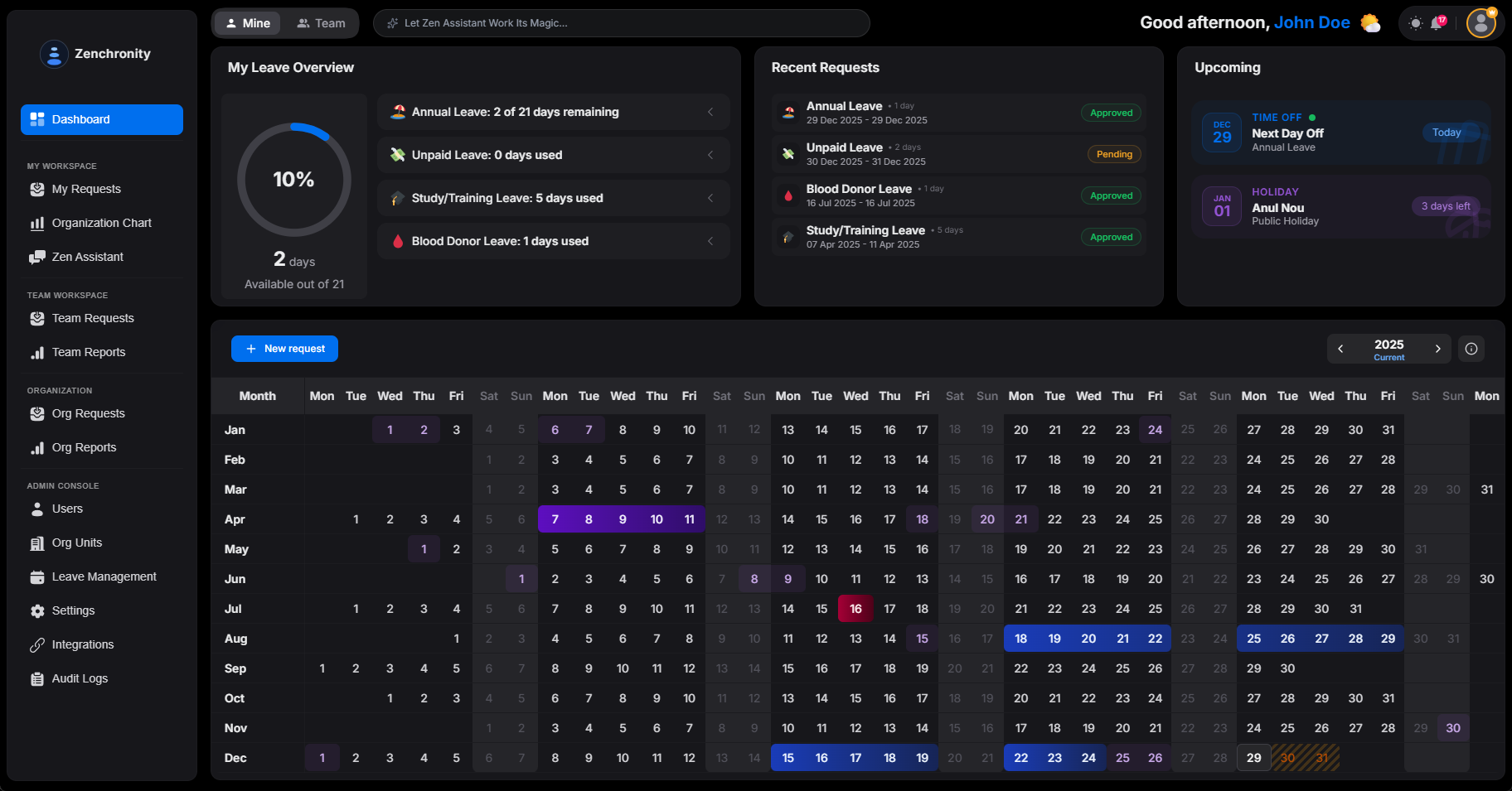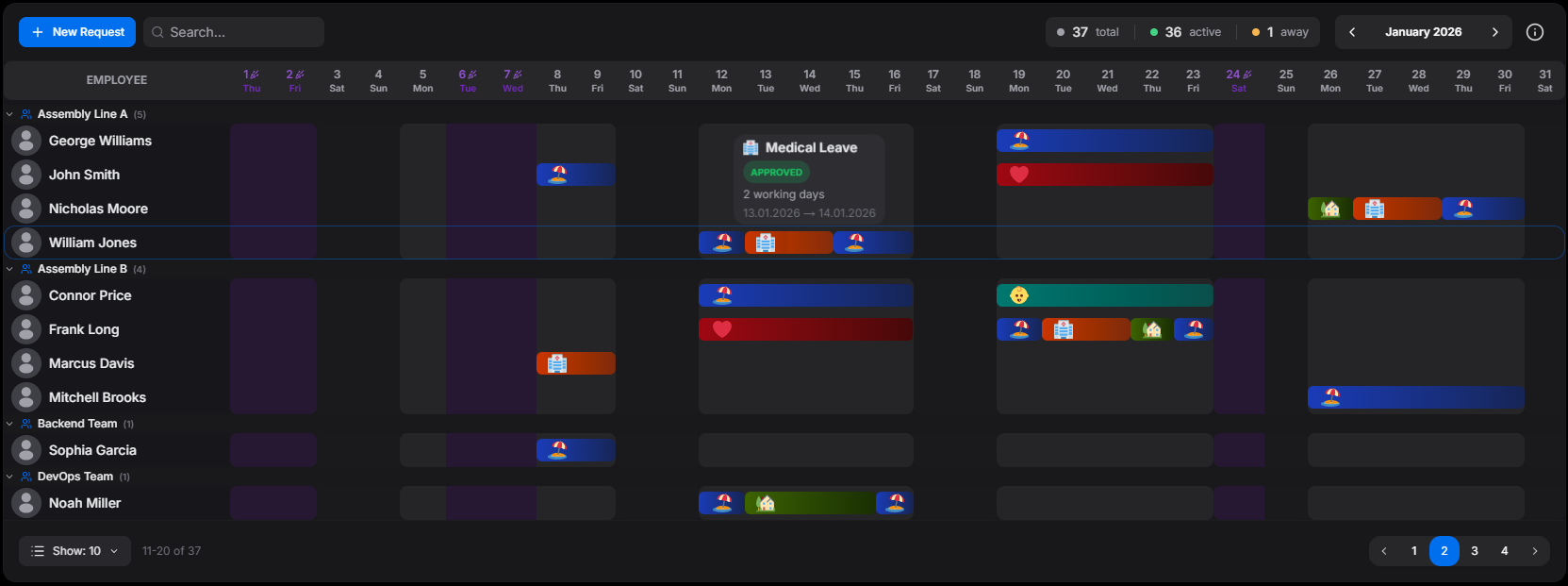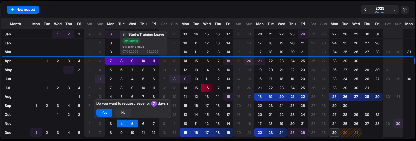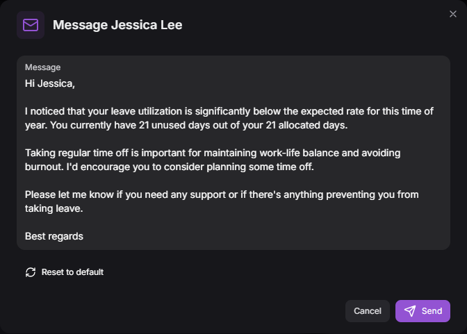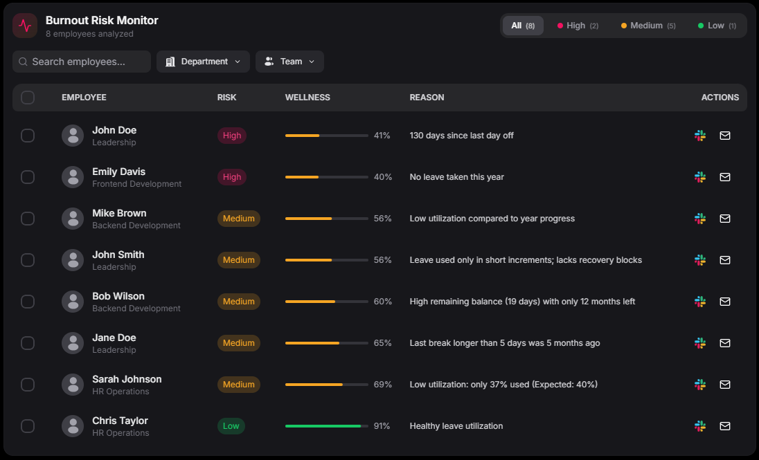 Smarter leave management with AI supporting balance and preventing burnout.Works natively with Slack or anywhere else via our API.